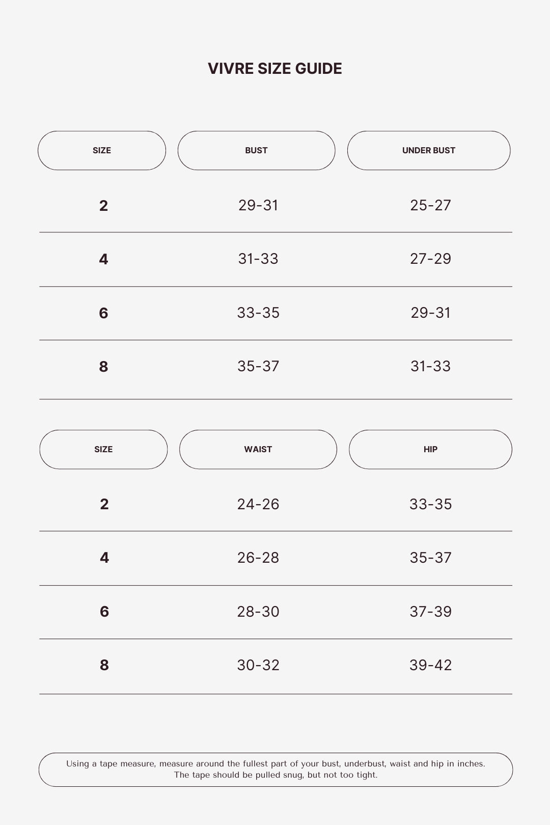 Vivre Size Guide - Find Your Best Fit