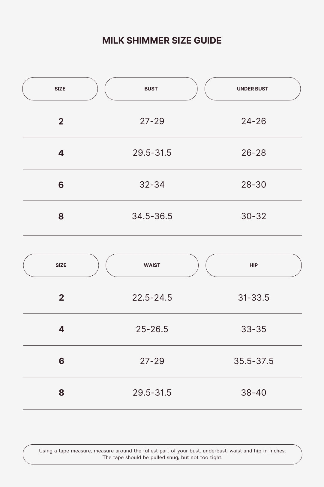• Recommended to size up if you are between sizes, as the shimmer detailing adds higher compression. The size chart (shown in the product image) has been updated to reflect the correct fit for this set.